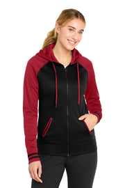 DRIEQUIP Women's Varsity Fleece Full-Zip Hooded Jacket with Colorblock Sleeves